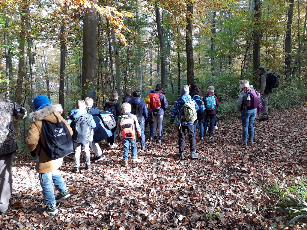 Wir sind zur Bushaltestelle gelaufen. Wir sind mit dem Bus Nummer 5 zur Alteburg gefahren. Dort haben wir Herrn Müller vom Hagen getroffen. Er hat uns von Wildschweinen, Rehen und mehr Tieren erzählt. Was sie fressen und vieles mehr. Dann sind wir in den Wald gegangen. Dort haben wir eine kleine Vesperpause gemacht. Wir haben Holztiere gefunden und Herr Müller hat uns gezeigt, wie sein Hund angeschossene Tiere holt. Dann sind wir zurückgegangen und Lisa hat sich super getarnt. Dann sind wir mit dem Bus zurückgefahren.